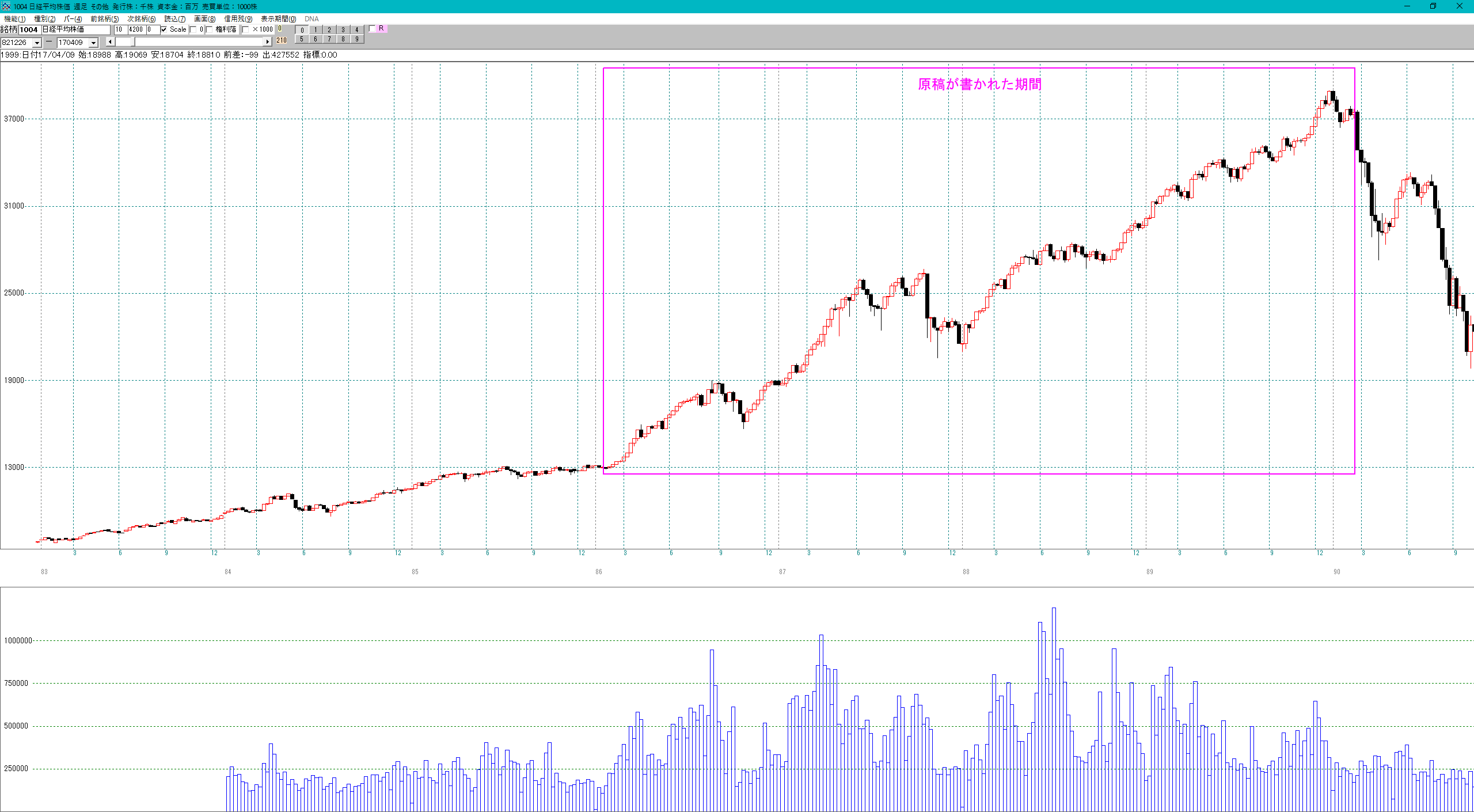 | 1986年〜1990年の日経平均週足チャート | ||